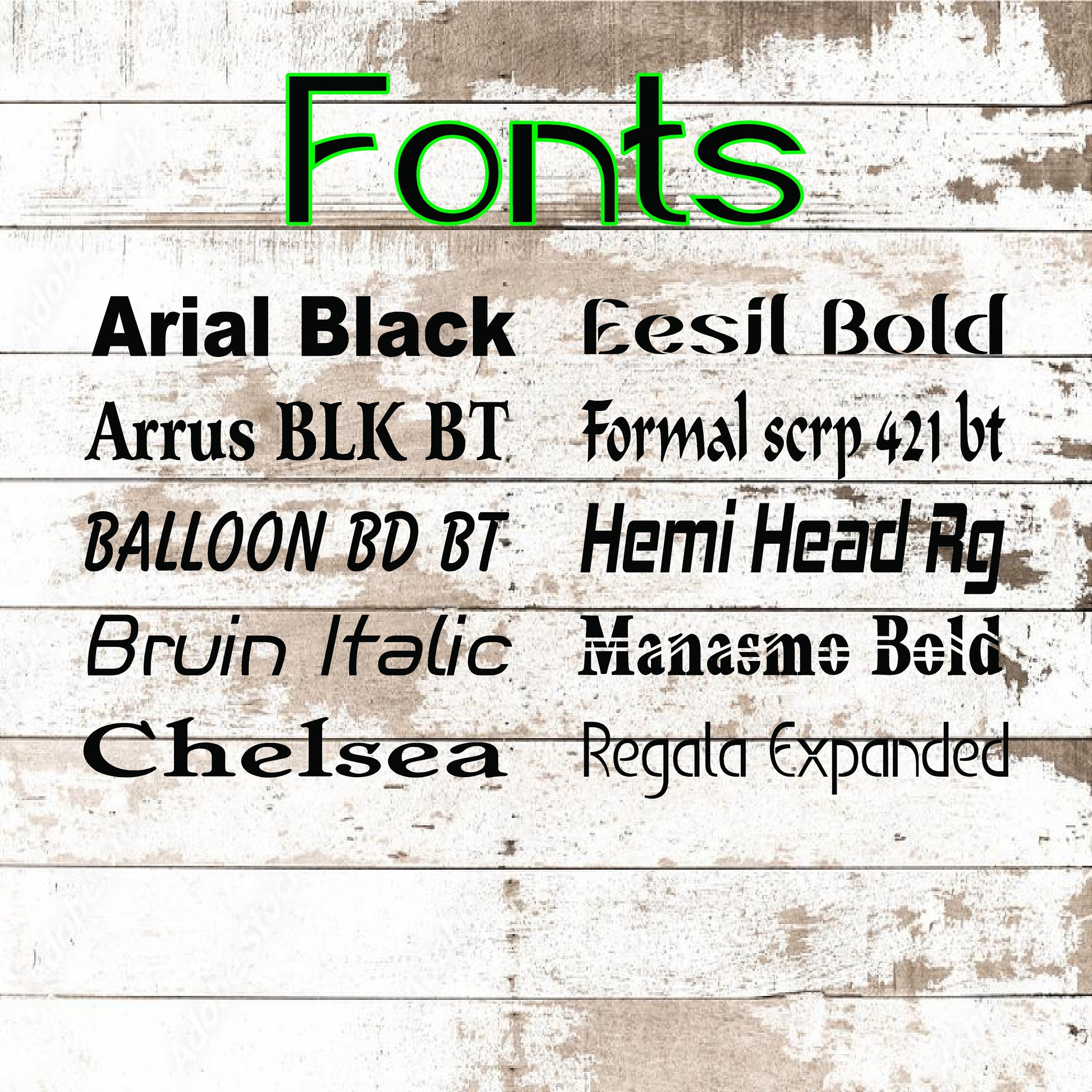 Font Options: Standard fonts included – custom fonts available by request (additional fee may apply)